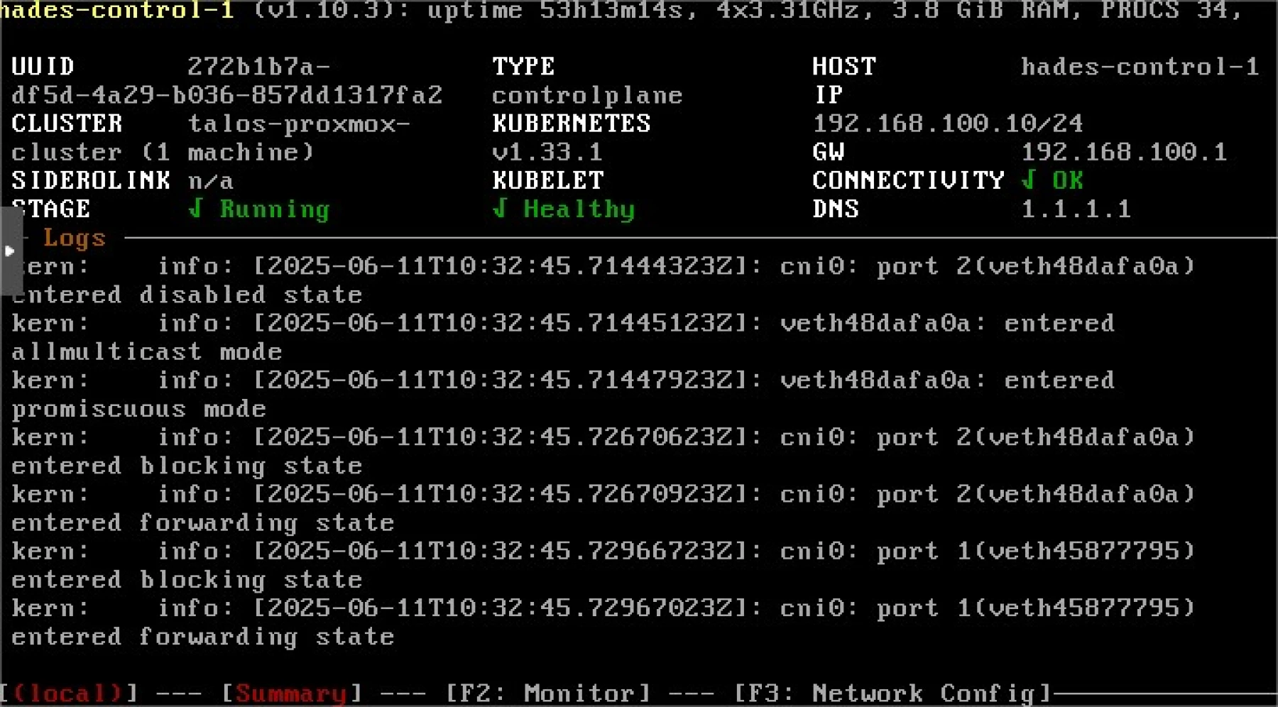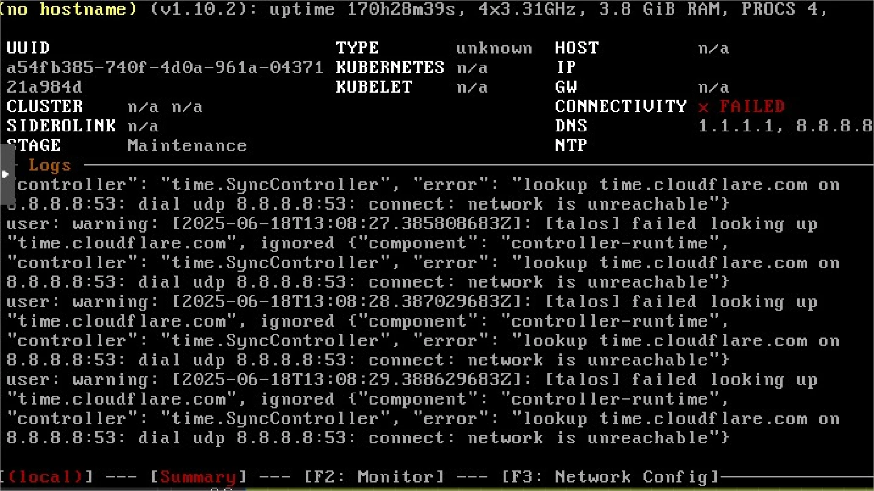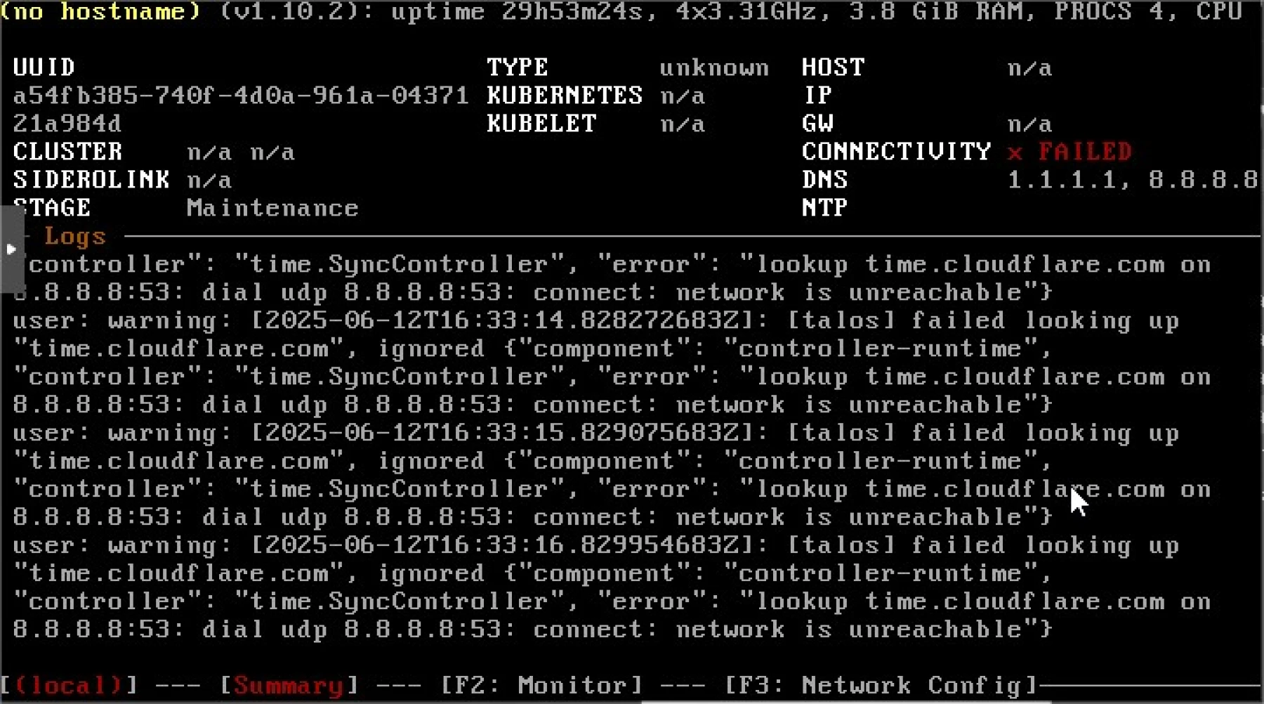 # talosctl apply-config --insecure --nodes $CONTROL_PLANE_IP --file controlplane.yaml