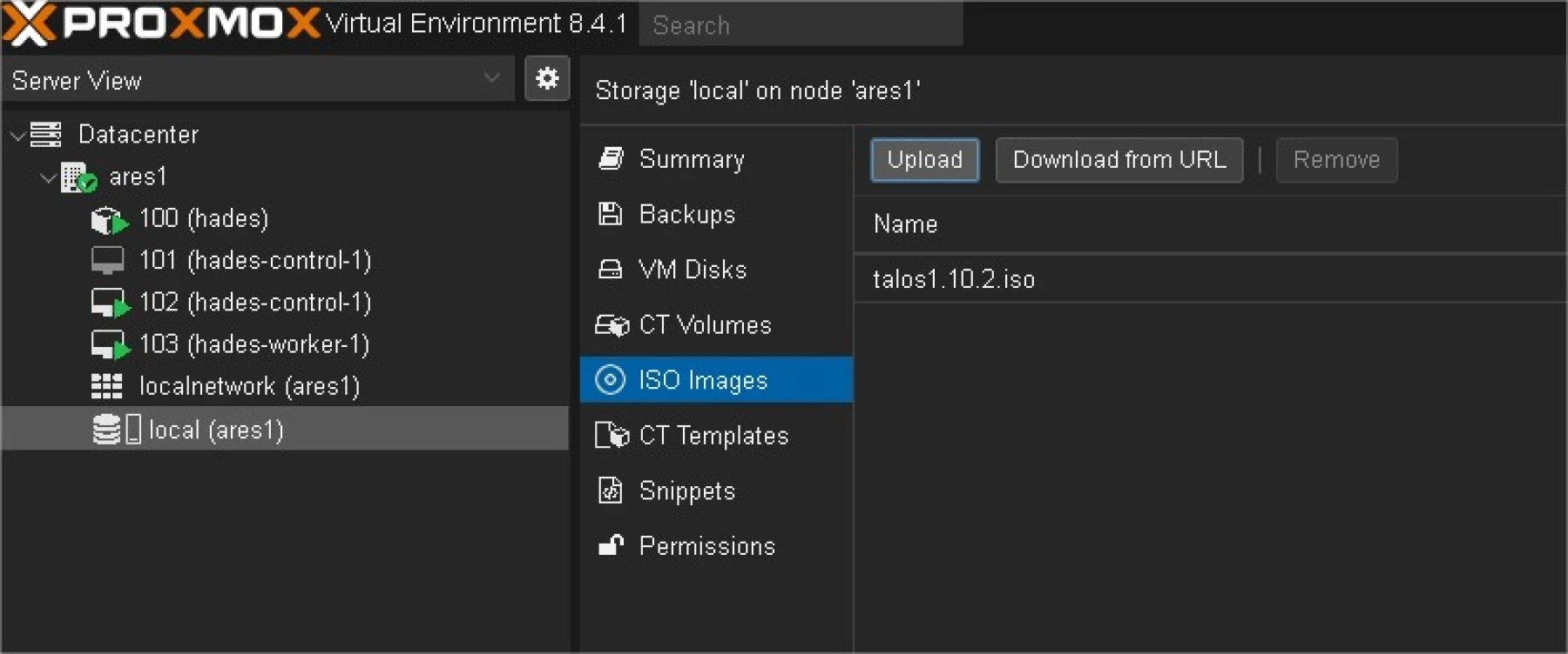 - On télécharge l'ISO metal-amd64.iso sur notre serveur Proxmox