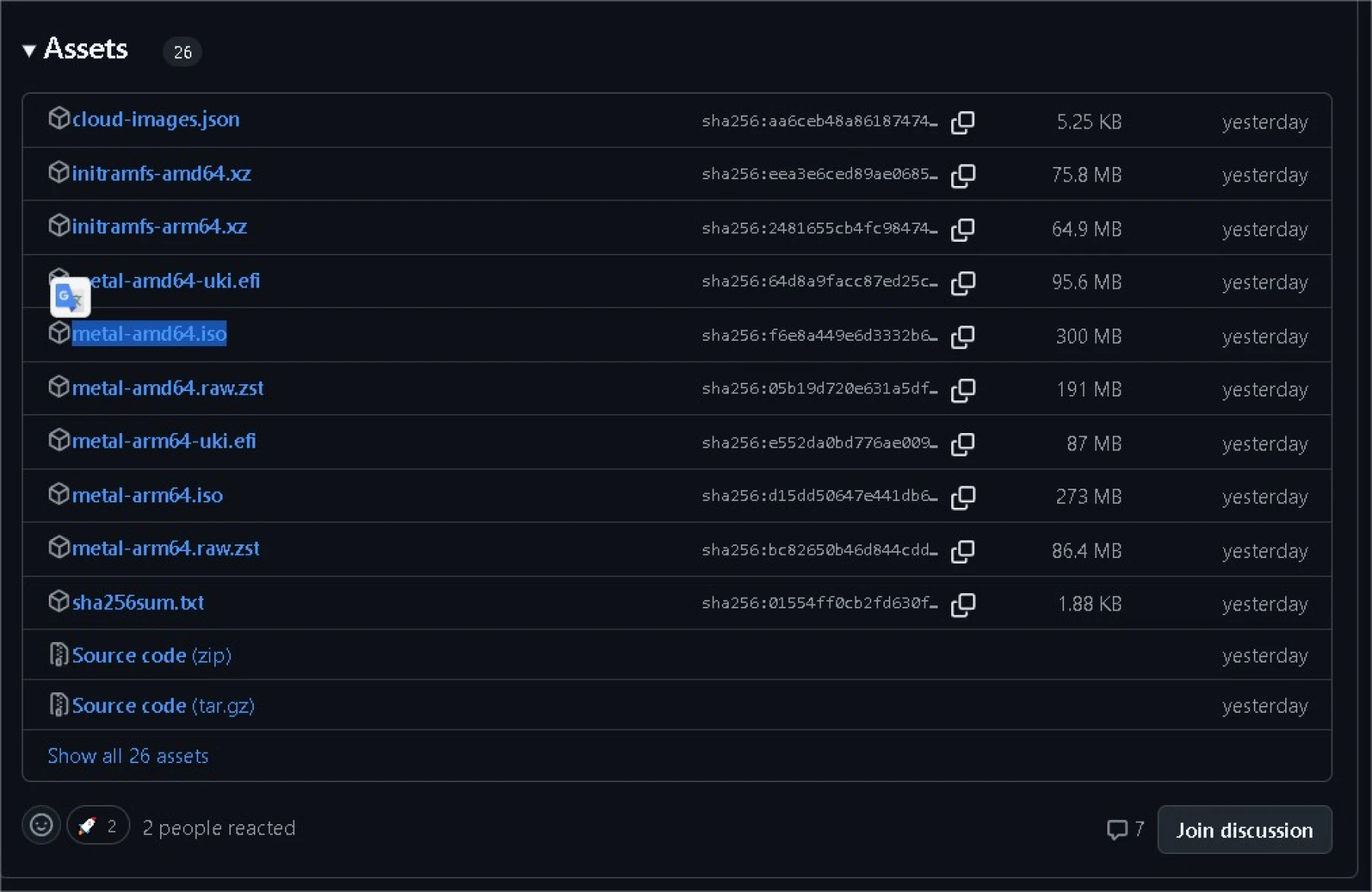 Ces éléments nous permettront de configurer les cluster et de l'administrer par la suite - Téléchargez l'image ISO de Talos Linux depuis le repo officiel ici.